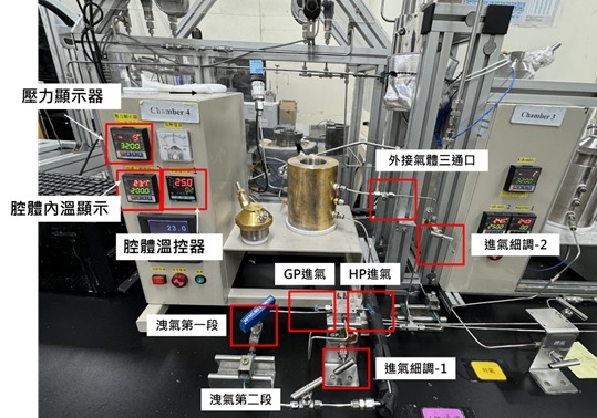 本超臨界流體系統主要應用於半導體電子材料、先進記憶體元件與奈米元件之製程處理與材料改質研究,利用超臨界流體兼具氣體高擴散性與液體高溶解能力之特性,可有效進行缺陷鈍化、界面修復與材料內部處理。系統具備寬廣且可精準控制之溫度與高壓操作範圍,並搭載高精度溫控與壓力調控模組,可即時監控並穩定維持超臨界狀態,提供高度可重複之處理條件。腔體內部之流體環境可依製程需求導入不同反應氣體或添加劑,以進行材料缺陷鈍化、介電層品質改善及界面電性優化等製程,進而系統性探討不同超臨界製程參數對元件電性表現與可靠度特性之影響。
